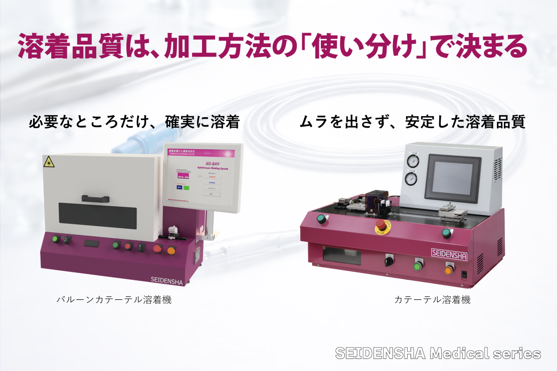 こうした考え方のもと、当社ではレーザを用いたバルーンカテーテル溶着機と、高周波誘導加熱を用いたカテーテルチューブ溶着機の両方をラインアップしており、デバイスの構造や用途に応じて、専門スタッフが最適な溶着工法をご提案できる体制を整えています。また装置そのものだけでなく、現場で再現性の高い加工を無理なく継続できるよう、日常管理を前提とした運用面についても実践的なアドバイスを行うことで、医療用カテーテルの品質を支えています。