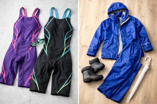 競泳用水着では、水の抵抗をできるだけ抑えるため、超音波ミシンなどによる溶着加工が用いられることがあります。縫い目の凹凸を減らすことで、水中での抵抗低減を図ります。