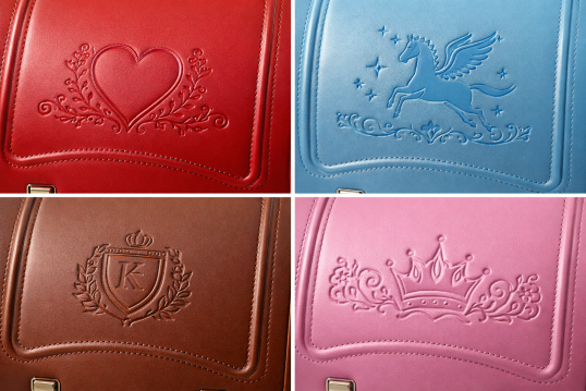 ランドセルのロゴや模様には、型押しによる加飾が施されます。