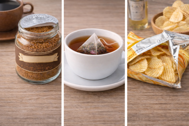 ――コーヒー瓶の内蓋、ティーバッグの本体と紐のつなぎ目、スナック菓子のパッケージ――
